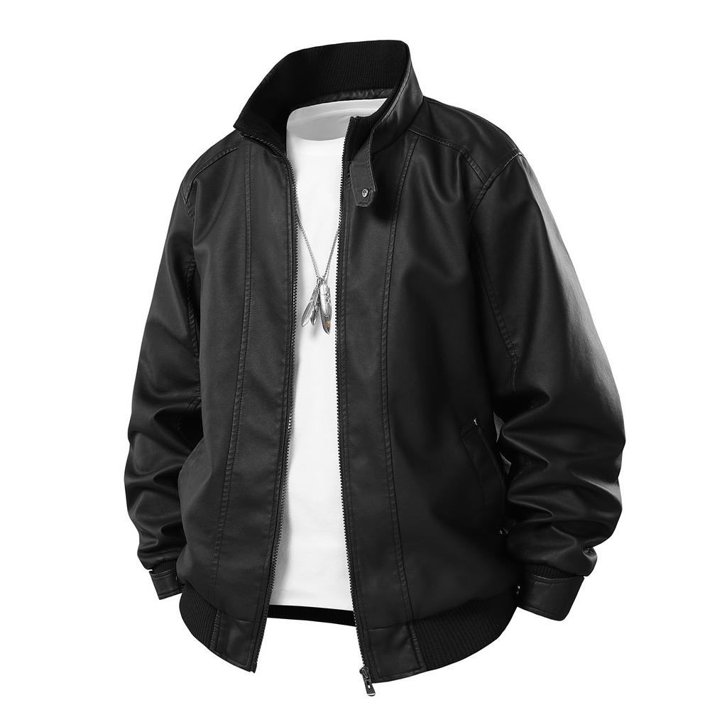 Men's Motorcycle Uniform Simple and Versatile Stand Up Collar Leather Jacket Wide
