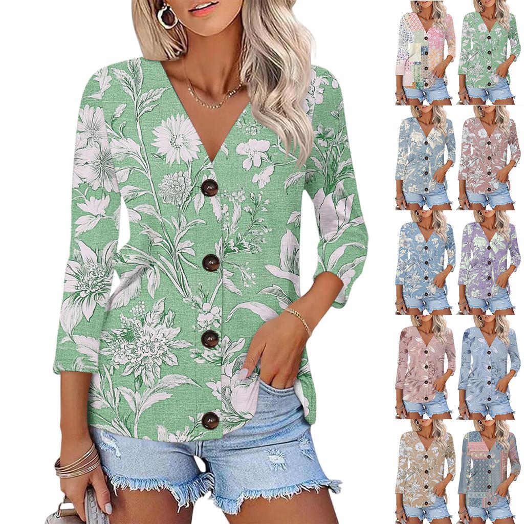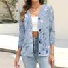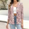 Women's Casual Fashion Floral Print Button 3/4 Sleeve Cardigan Top