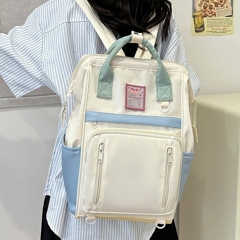 School Bag New Contrasting Color Laptop Backpack Junior High School College Student Campus Backpack Popular Girl School Bag