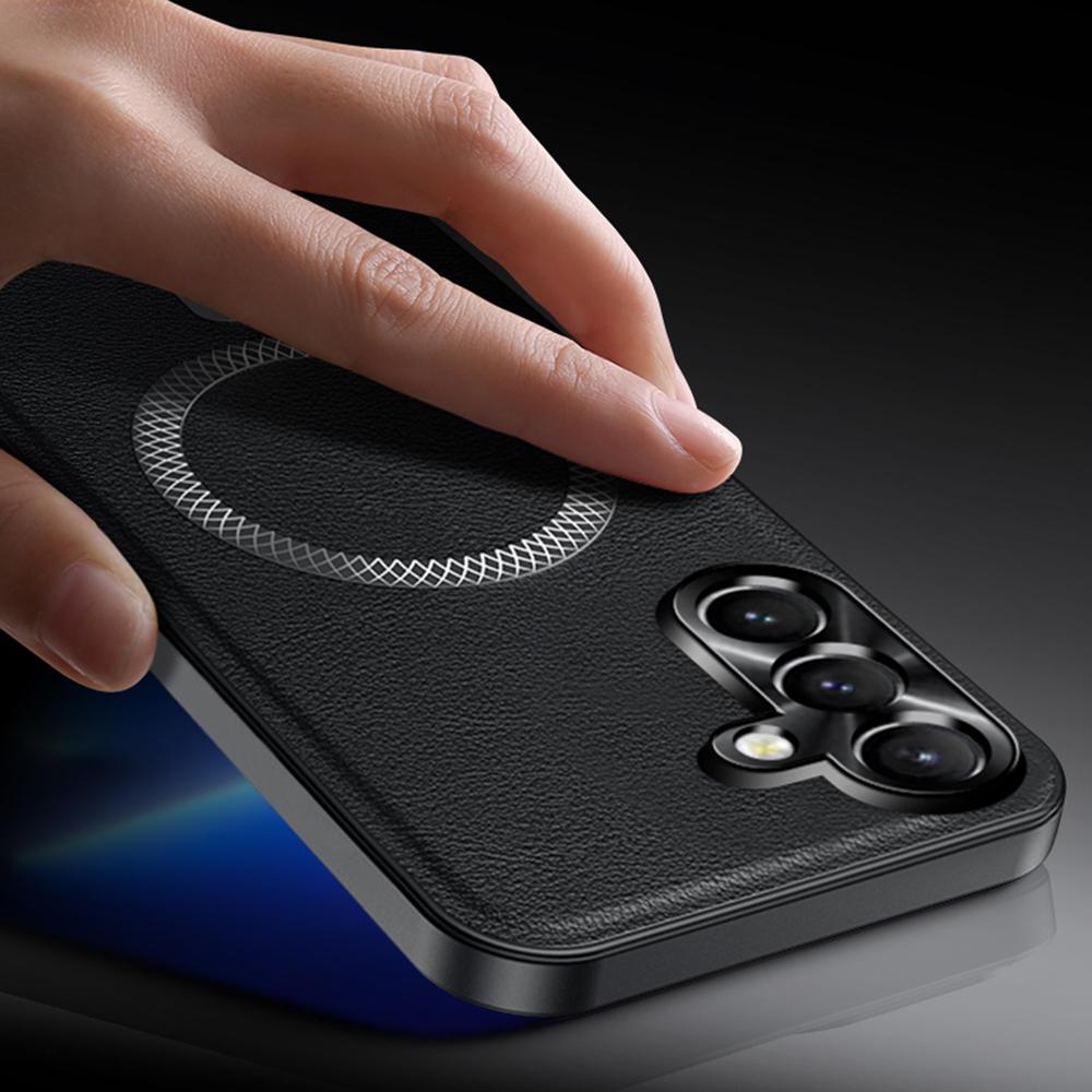 For Samsung Galaxy S24+ Case Compatible with MagSafe PU TPU PC Phone Back Cover with Metal Lens Frame