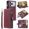 For iPhone 17 Pro Max Wallet Case Rhombus Stitching Line PU Leather Phone Cover with Wrist Strap