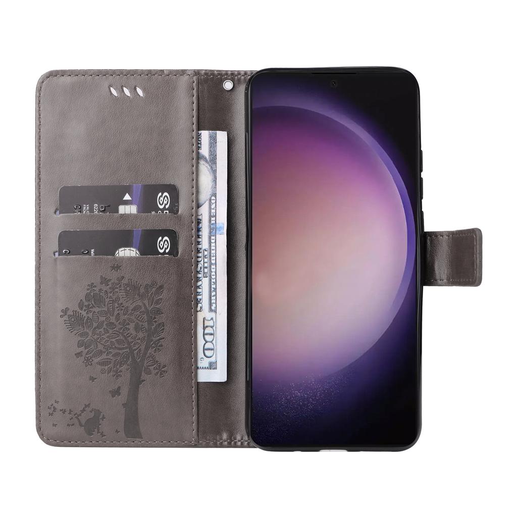 For Samsung Galaxy S24 Ultra Phone Case with Stand Cat Tree Pattern Leather Wallet Mobile Cover
