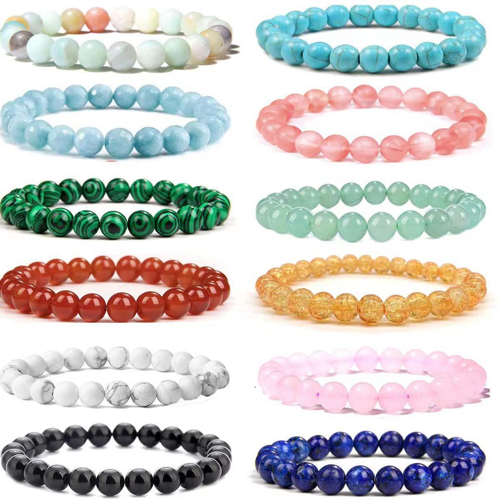 New 8mm White Pine Round Bead Bracelet with Aquamarine, Rose Quartz, and Agate Stones for Women