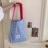 Fashion Cotton Fabric Shoulder Bag for Women Simple Plaid Pattern Large Casual Capacity Shopper Tote Bags