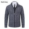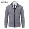 Stay warm and stylish this autumn and winter with this fleece-lined cardigan. Designed with a loose fit for added comfort, this sweater features a stand-up collar and long sleeves, providing extra protection against the cold. Made from durable polyester material, it also includes a soft, chemical fiber blended lining for added warmth. Perfect for layering, this thick knit zipper sweater effortlessly combines practicality and fashion for the colder months.