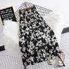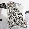 Women's Black & White Floral Chiffon Midi Skirt - High Waist A-Line Summer Style