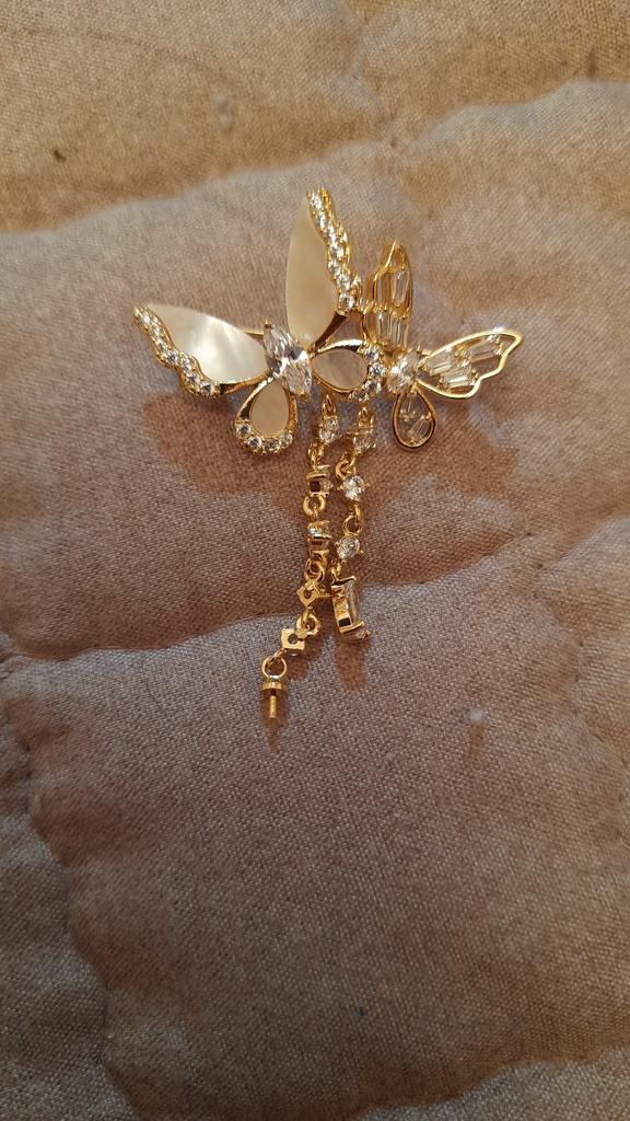 Butterfly Tassel Brooch with Natural Shell and Gold-Plated Zircon Pin Pearl Corsage