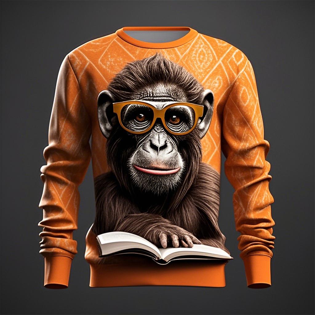Men's Funny Monkey Graphic Sweatshirt 3D Print Animal Gorilla Pattern Round Neck Pullover Oversize Daily Casual Personality Tops