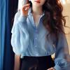 Chic Korean-Style Blue Chiffon Long Sleeve Women's Blouse