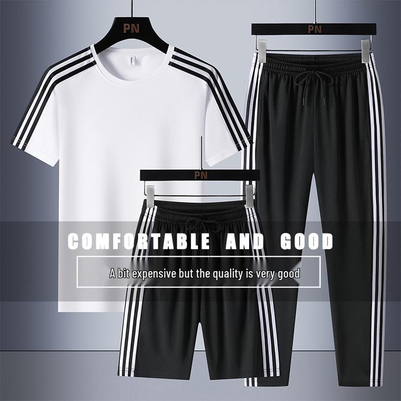 Elevate your summer workout wardrobe with this Women's Sporty Three-Piece Set. Crafted from high-quality polyester, this set is designed for both comfort and style. It includes a crew neck, short-sleeve top, and matching sporty shorts, perfect for casual running or any outdoor activity. The standout feature is the chic three-stripe design that adds a touch of modern flair to the ensemble. Ideal for sizes M to 8XL, this set offers a perfect blend of functionality and fashion, ensuring you look great while staying active.