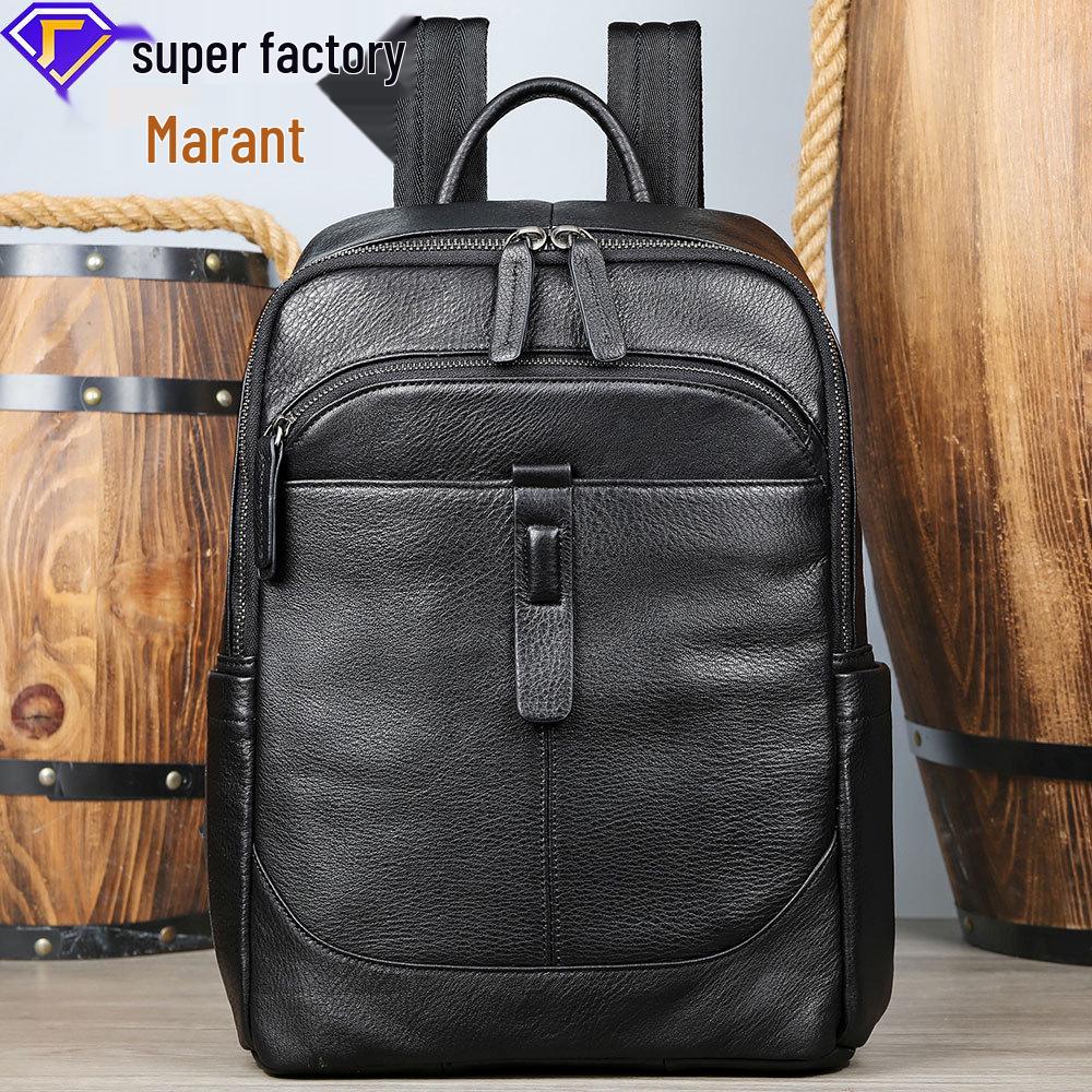 Men's Genuine Leather Cowhide Backpack - Business, Travel, Laptop, and Schoolbag with Large Capacity