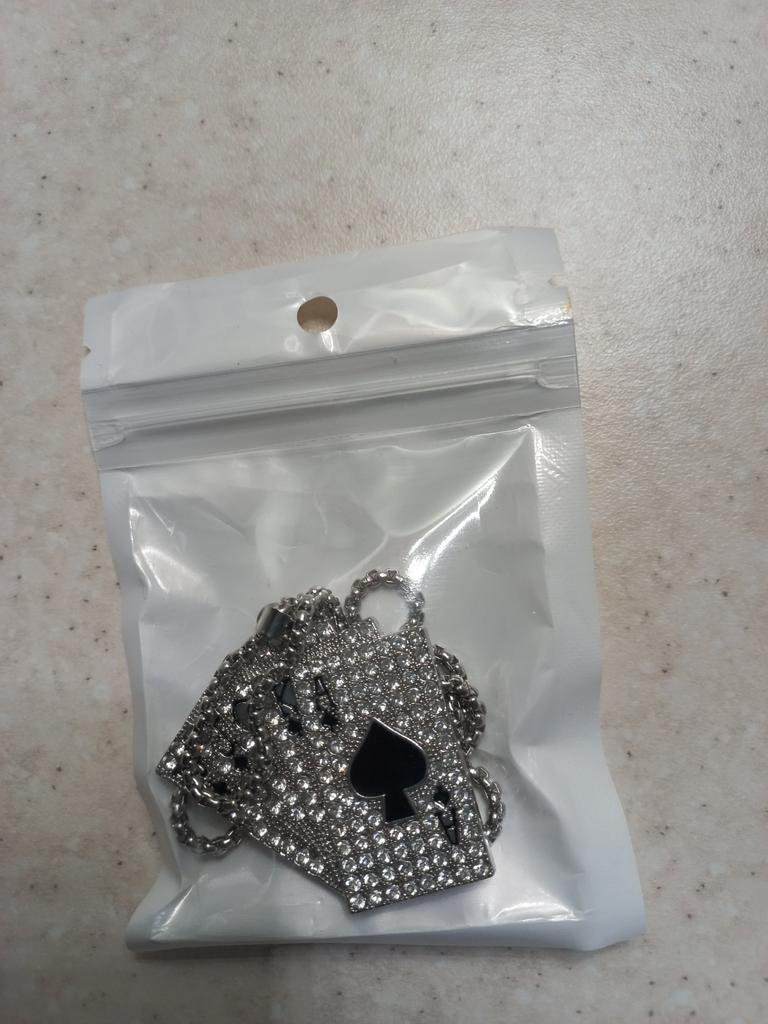 Retro Playing Card Hip-Hop Necklace for Men & Couples - Diamond-Studded Straight Flush Chain
