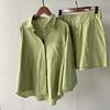 Discover effortless style and comfort with this Women's Retro Plus Size Cotton Linen 2-Piece Set. Comprised of a high-waist shirt and loose shorts, this outfit perfectly balances practicality and flair. The ensemble showcases a solid pattern, complemented by distinctive patchwork and quilted decorations that add a unique touch. Made from a quality cotton blend, the material ensures breathability and ease of wear. Designed with a sportive style, this set is ideal for casual outings or relaxed days at home, offering both fashion and functionality.