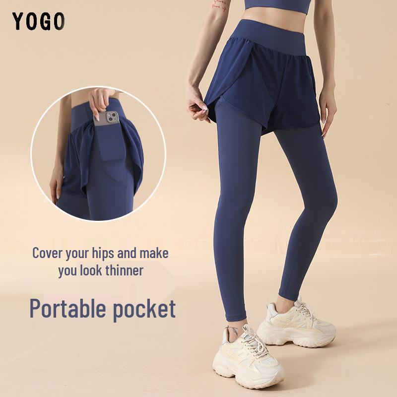 2025 High Waist Yoga Pants: Fake Two-Piece, Elastic, Hip-Lifting, Tummy Control, Nude Feel, Anti-Exposure Running and Fitness Wear