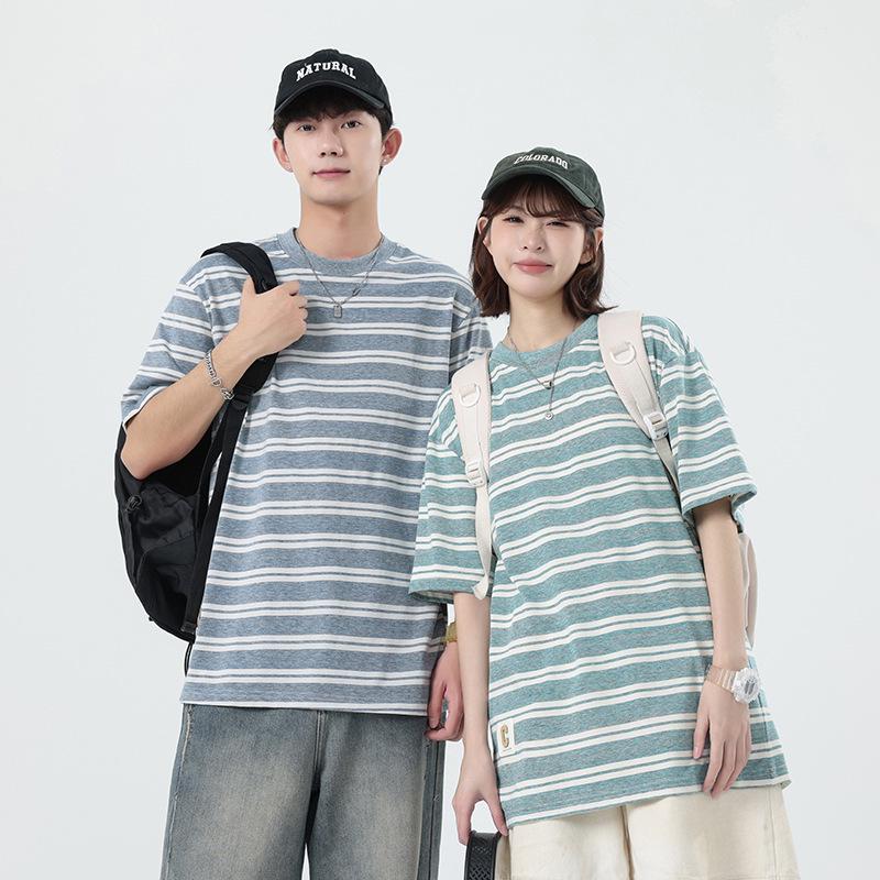 This men's T-shirt features a stylish striped pattern and a relaxed fit, perfect for embracing a summer trend inspired by Japanese fashion. Crafted from soft, breathable cotton, it ensures comfort throughout the day. The round neckline adds a classic touch to this versatile piece, making it an ideal choice for casual outings or laid-back occasions.