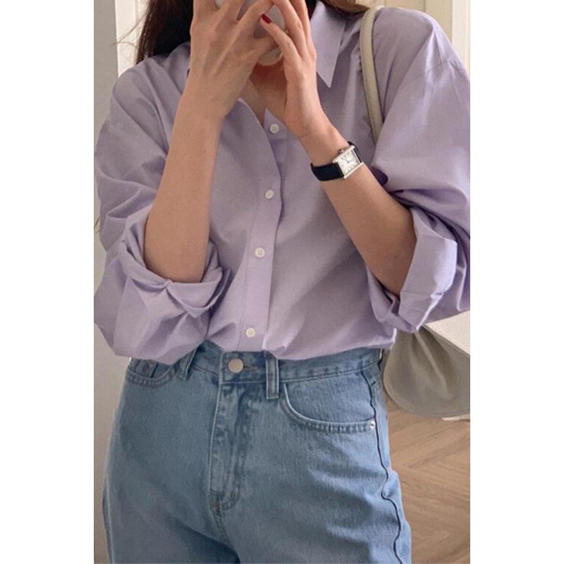Women's Purple Korean-Style Slim Fit Long Sleeve Shirt: Spring/Autumn 2025 Collection