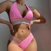 New Swimsuit Solid Color Sexy Neck Women's Split Multi-color Bikini Swimsuit