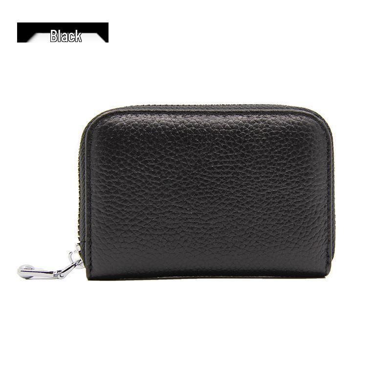 Accordion Top Grain Cowhide RFID Anti-Theft Multi-Card Zipper Leather ID Card Holder
