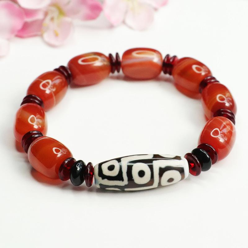 ModelNine-Eyed Dzi Red Agate Tube Bead Bracelet (MN1122565)