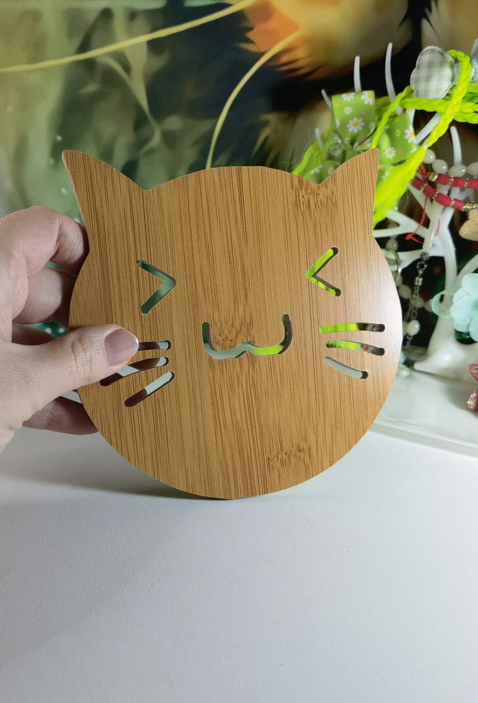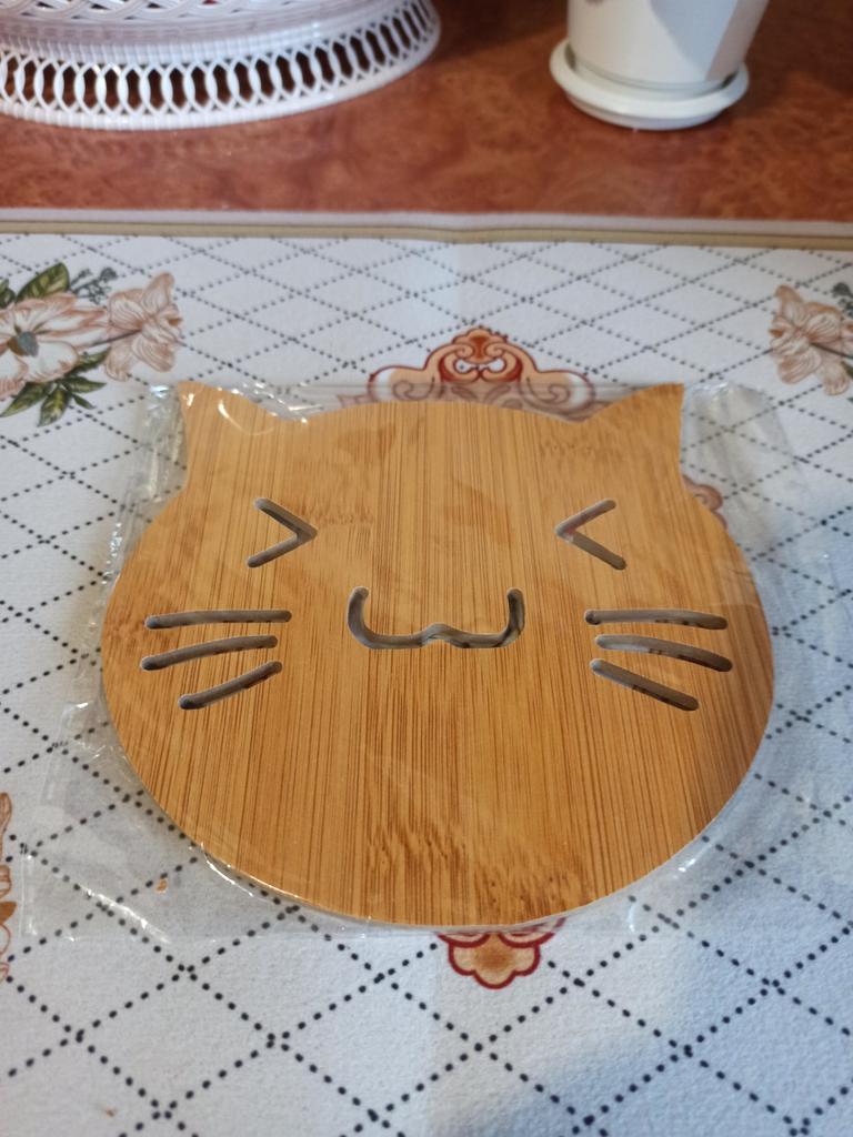 Wooden coaster 👍👍👍 There are 4 variations to choose from. I bought it in this cat shape and am very happy with it.. The delivery time to Germany took 14 days. The product was well packaged and arrived undamaged. Very good for the kitchen 👍👍 No defects. I gladly recommend it. 5 stars 🌟 🌟 🌟 🌟 🌟