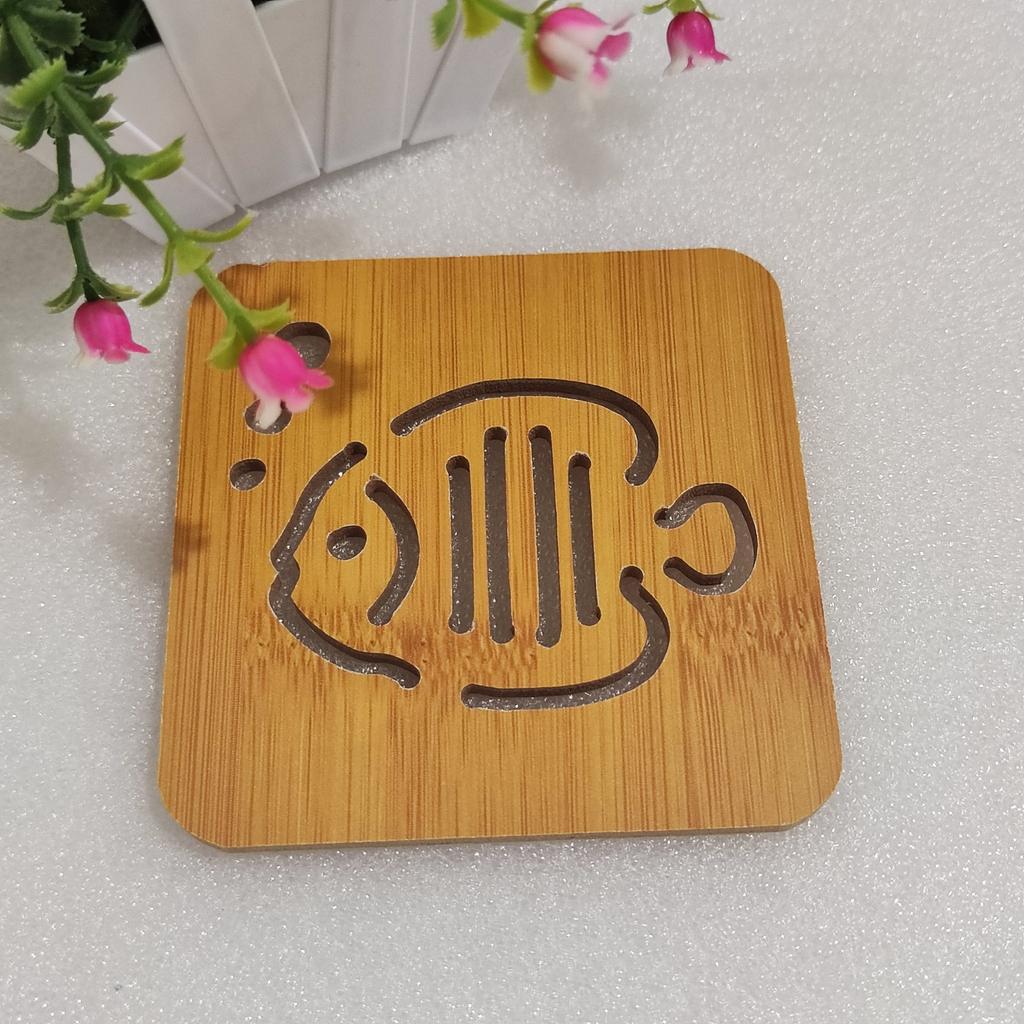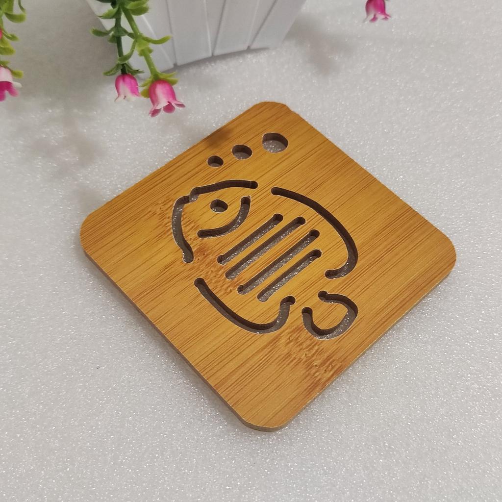 Cartoon Hollow Wooden Coasters Kitchen Tableware Thickened Anti-scalding Heat Insulation Wooden Non-slip Pan Bowl Pad