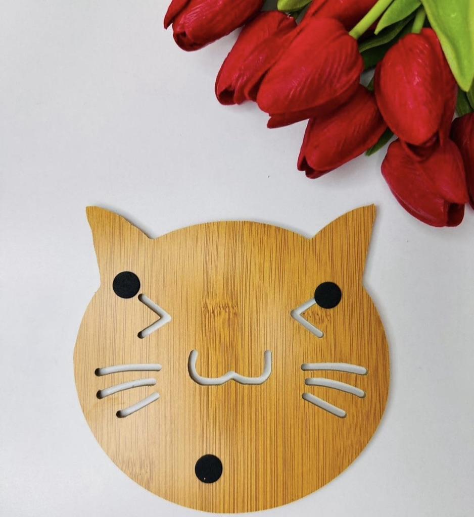 🐱 I received the coaster, which is available in four different designs, after two and a half weeks of delivery time, very well packaged and consolidated, delivered in Austria. 🐱 The coaster is made of wood and is used, for example, to place hot pots on it, or to set down a cup on it.. On the underside there are anti-slip buttons that provide better adhesion. I am thrilled with this model and highly recommend it 👍 🔝👩🍳! Music 🎶 from Capcut pro