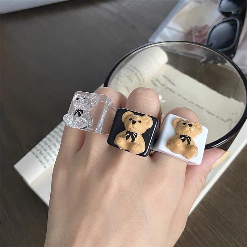 Korean Retro Cute Bear Resin Pinky Ring - Small Animal Design, Childlike Finger Ring for Women