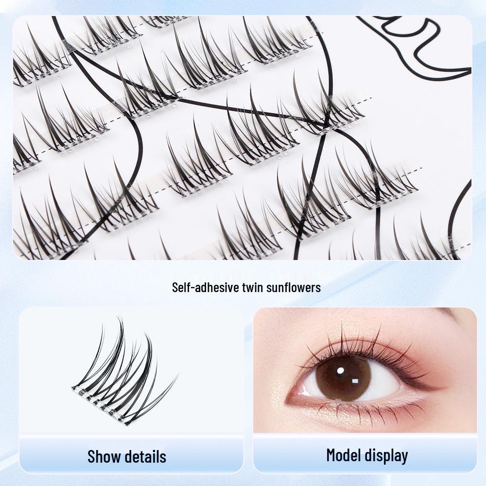 Glue-Free Double-Pointed Sunflower False Eyelashes – Waterproof, Sweatproof, Beginner-Friendly, Natural Look