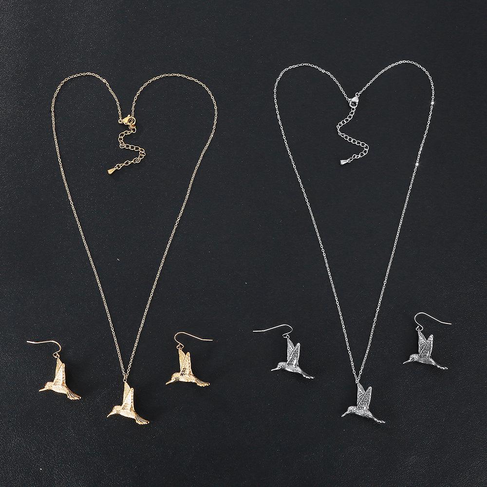 Stainless Steel Waterproof Non-Fading Bird Wing Earrings & Pendant Set for Women