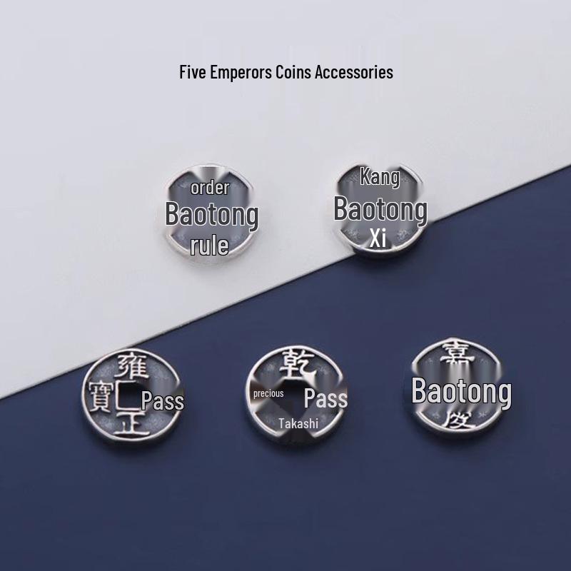 Wenwan Beaded Accessories: Five Emperors Coins Pendant, Unisex Wealth-Attracting Copper Coin Handwoven Bracelet with Spacer Beads.