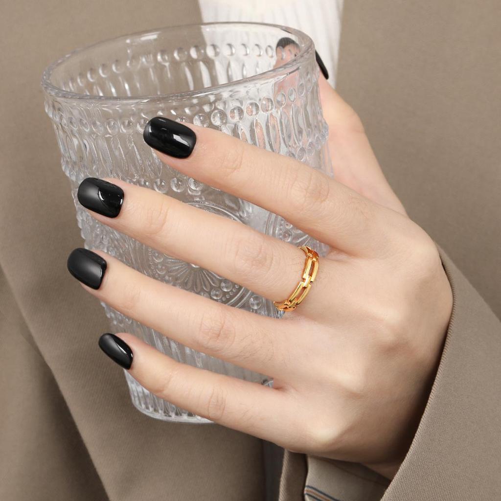 Cross-Border Geometric Chain Rectangle Ring: Minimalist Titanium Steel Jewelry