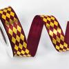 2.5" Diamond Grid Gold Foil Satin Ribbon for DIY Hair Accessories, Gift Bows, and Festival Decorations.