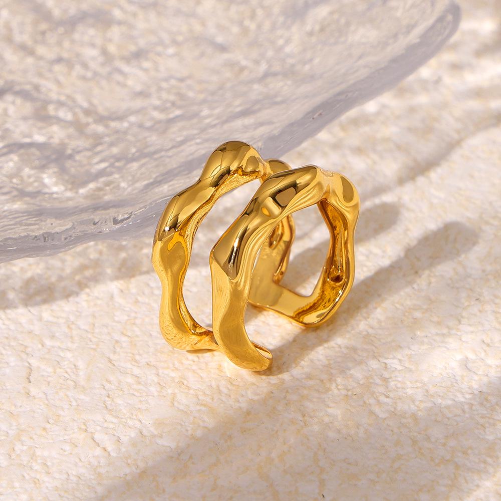 18K Gold-Plated Openwork Geometric Ring: European & American Style, Adjustable Copper Index Finger Accessory