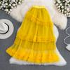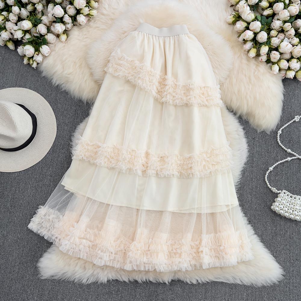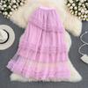 Summer High-Waisted Slim Multi-Layer Ruffled Tutu Skirt Mid-Length Over-The-Knee Elastic Waist Mesh Skirt Women