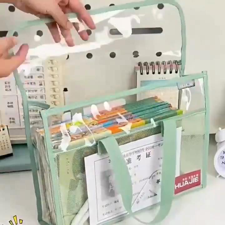 PVC Self-Adhesive File Bag Large Capacity Transparent Waterproof Handheld Folder Portable Expandable File Storage Bag