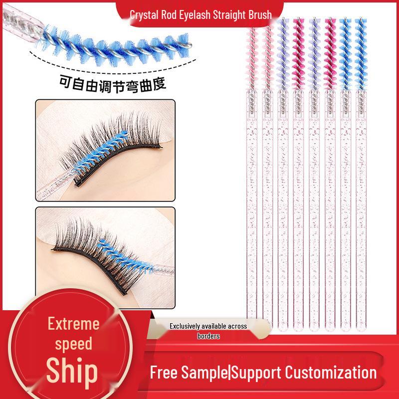 Crystal Handle Disposable Eyelash Brushes, Spiral Straight Comb - 50 Pack