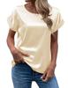 Experience elegance and comfort with this chic women's T-shirt, crafted from luxurious satin material. Designed with a solid pattern and featuring a flattering round neckline, this piece exudes a sophisticated yet relaxed vibe. Its short sleeves provide a breezy feel, making it perfect for warm summer days. The T-shirt is adorned with intricate patchwork and quilted decorations, adding a touch of unique style to your everyday look. Perfectly versatile, it complements both casual and office attire effortlessly.
