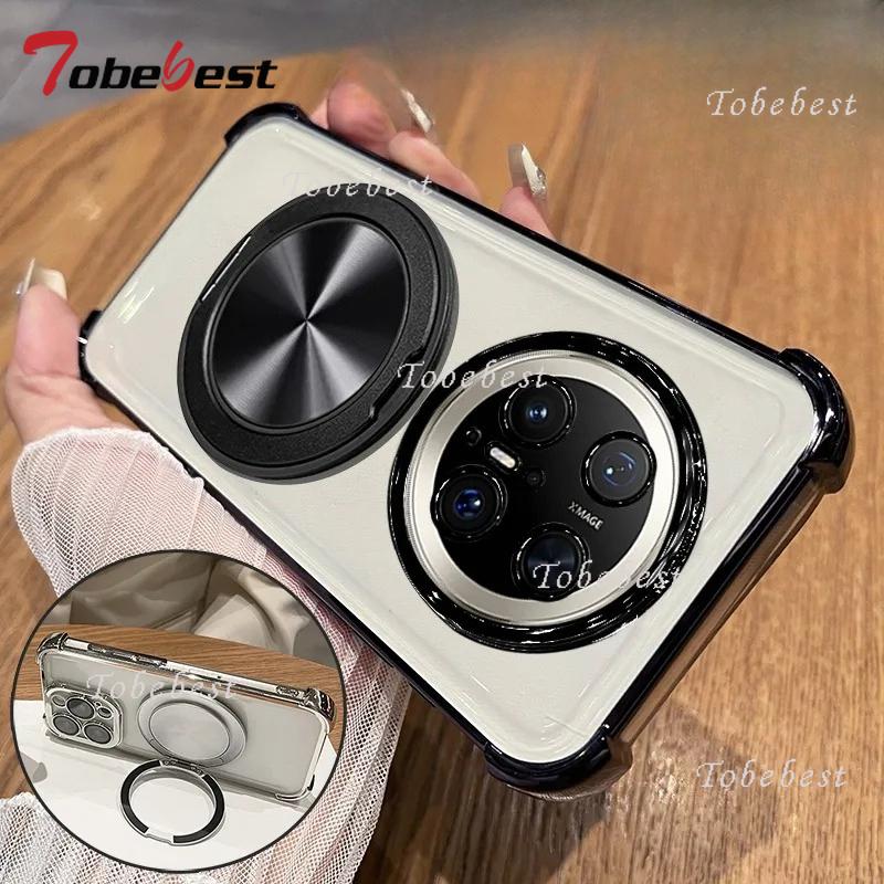 360 Degree Rotating Magnetic Bracket Shockproof Plating Case For Huawei Mate 70 60 50 40 30 Pro Transparent Back Cover