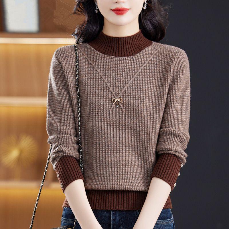 Women's Autumn & Winter Half-High Neck Short-Style Sweater Loose Knit Top for Matching Skirts (Suitable for Base Layer or Outer Wear)