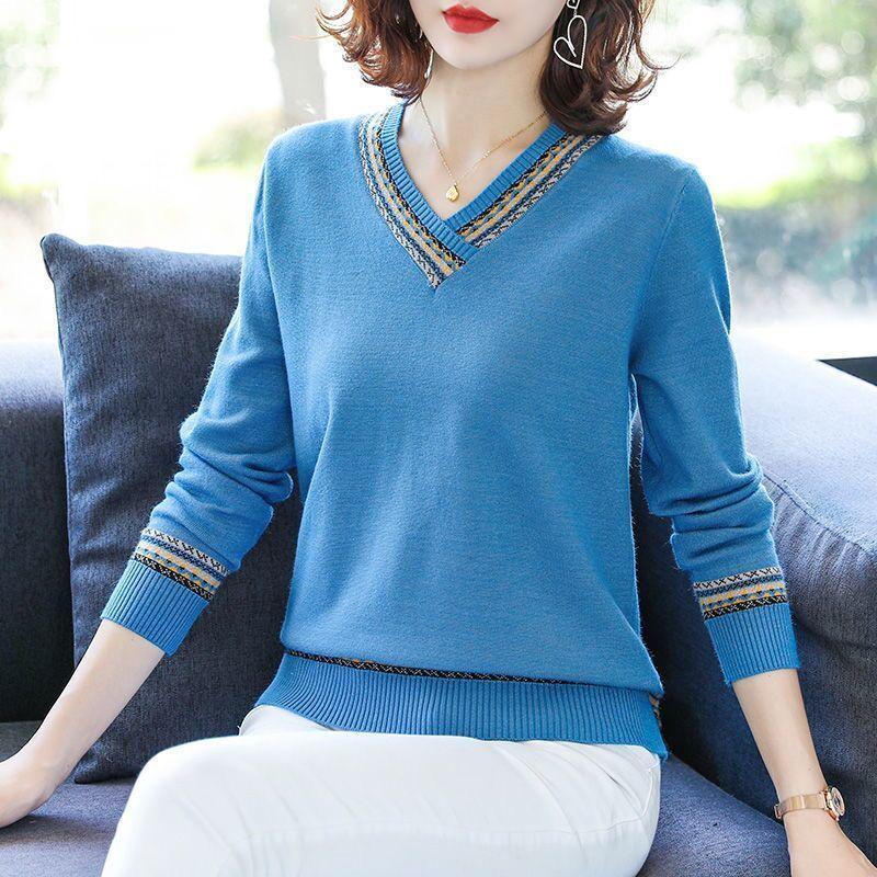 Women's Autumn & Winter Short-Style Pullover Sweater Sweetheart V-Neck Loose Knit Base Layer Top