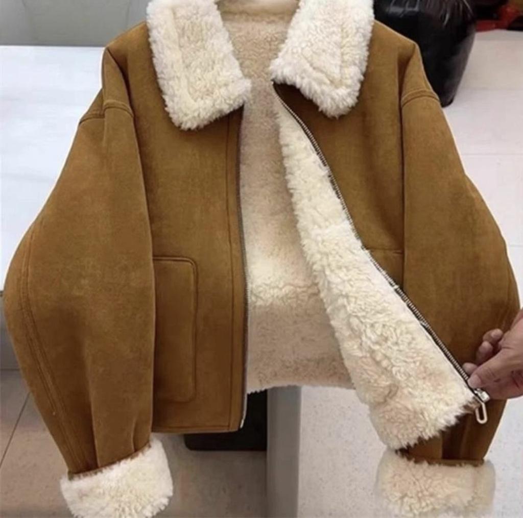 Lapel Fur One-piece Faux Fur Coat for Women Autumn Winter New Warm Thick Lamb Wool Versatile Jacket Top Fashion Outerwear