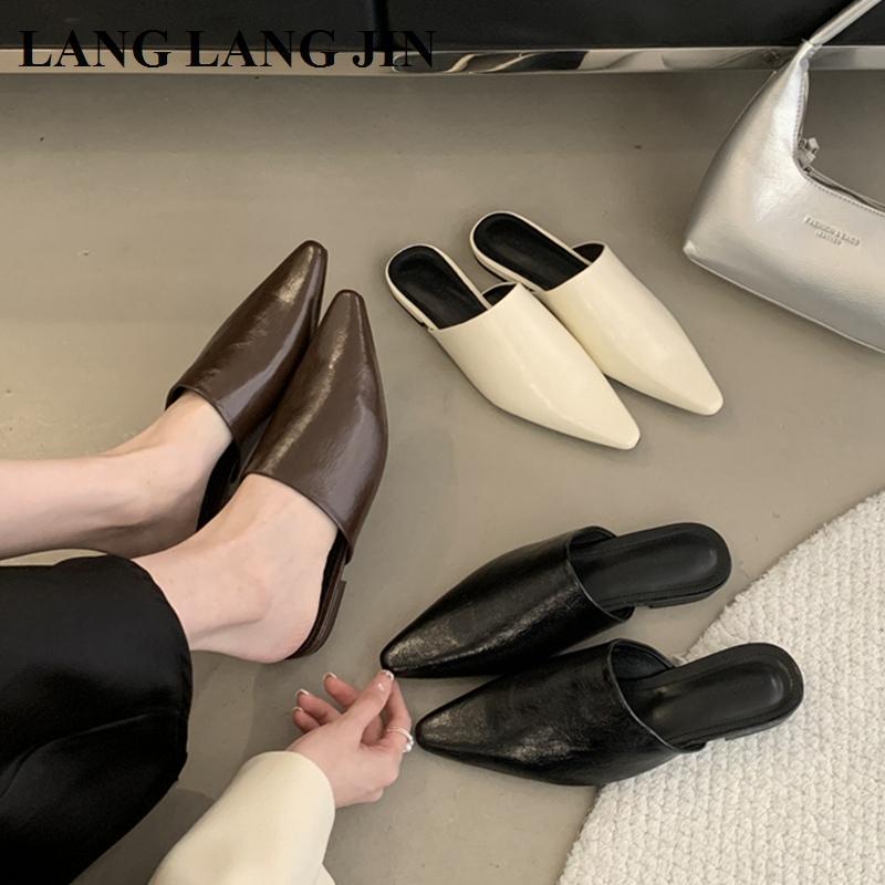 Designer 2025 Spring Pointed Toe Women Mule Slippers Female Slip On Shoes Ladies Casual Loafers Flats Heel Slides Sandals Mujer