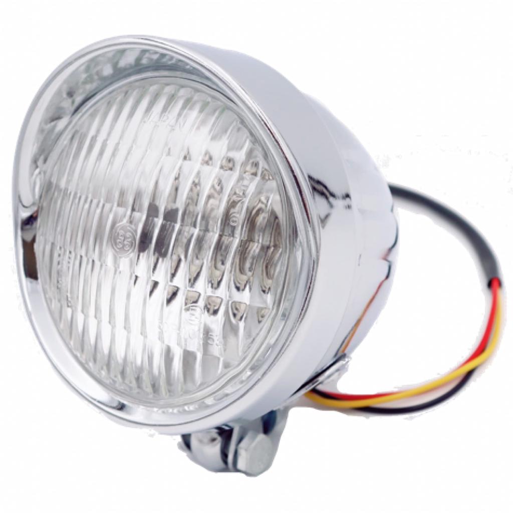 Meliore Universal 4.5" Baetlite Headlight with Visor American Vintage Retro Motorcycle Glass Lens for Suzuki Yamaha Honda Kawasaki Silver Clear