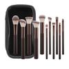 11pcs Solid Wood Handle Makeup Brush Set with Bag Three Color Loose Powder Brush Foundation Brush Eye Shadow Brush