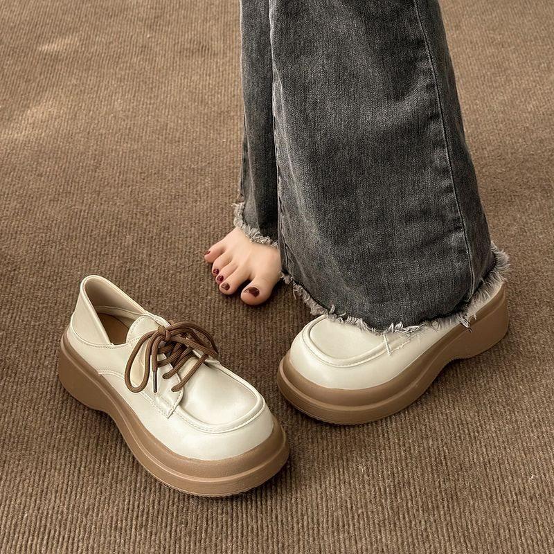 3543 Wind Small Leather Shoes Women's 41 Retro Big Head Shoes Muffin Platform Lace-up Student Single Shoes 42