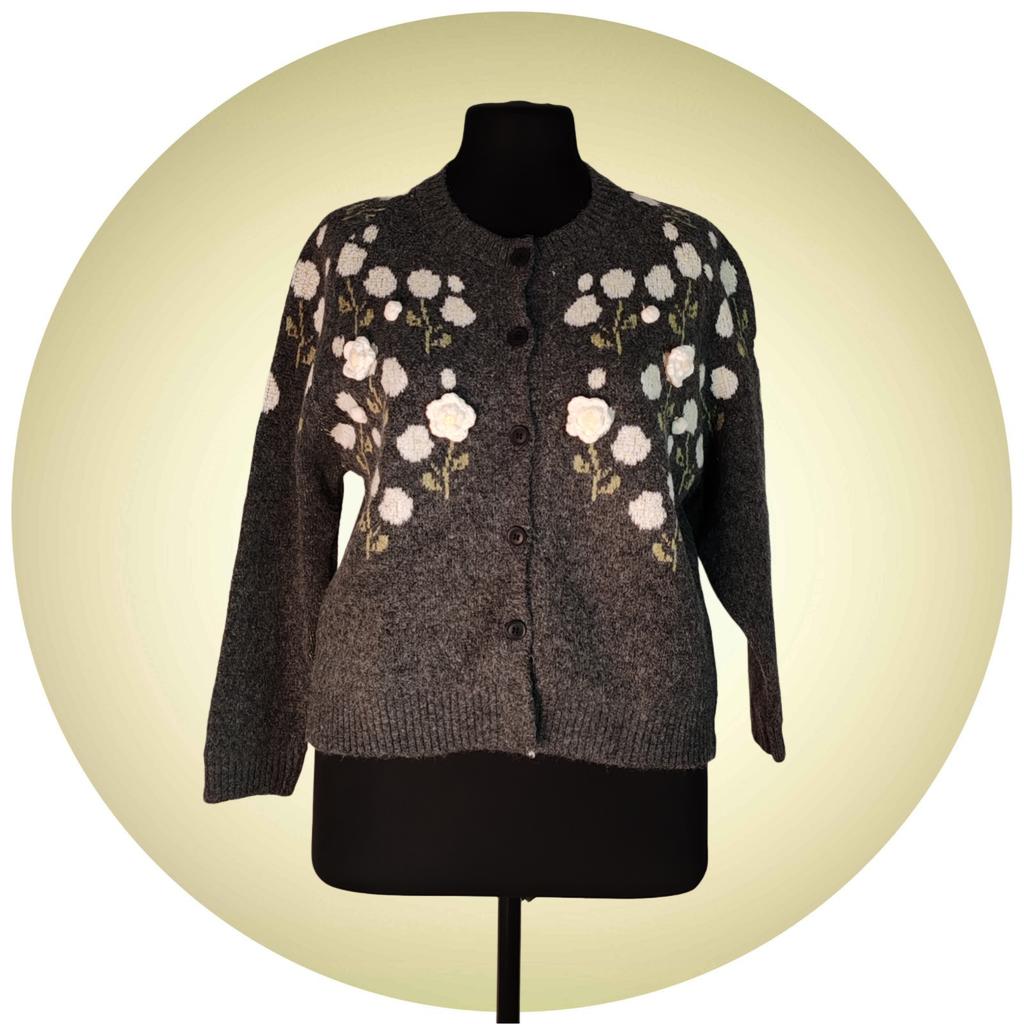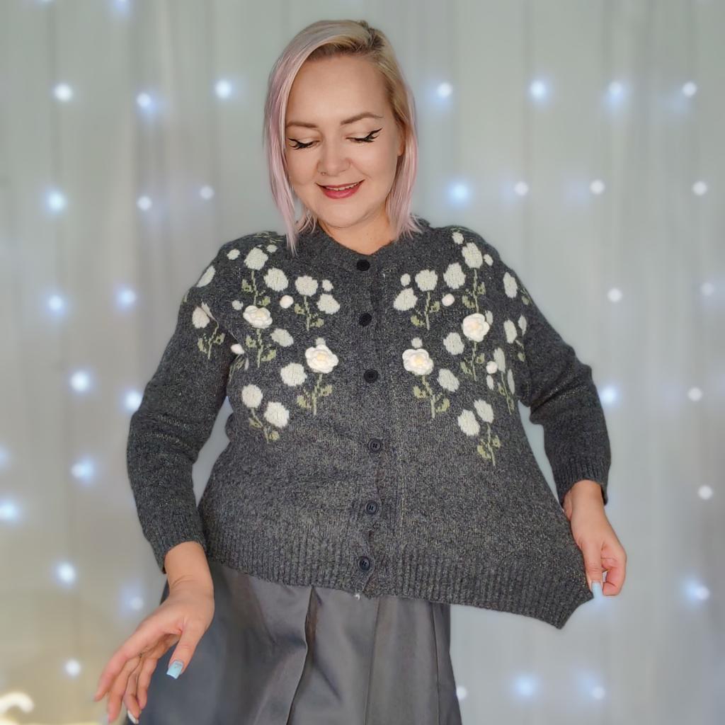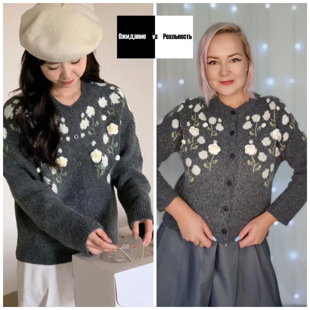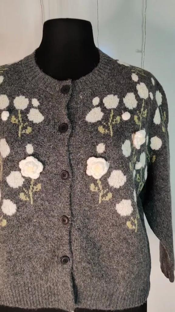DIMANAF 2025 Flower Sweaters Cardigan Embroidered Flowers Autumn Women Print O-Neck Sweaters Knitting Loose Pink Sweater