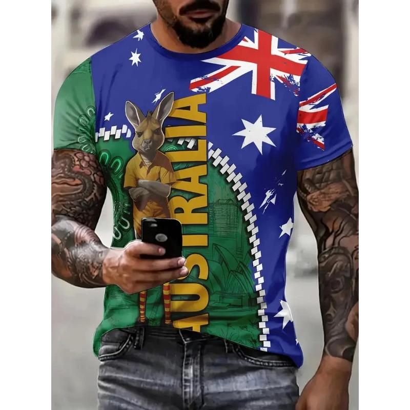 Summer Round Neck 3D Australia Flag Graphic Print Top Fashionable Casual Short Sleeved Men's T-shirts