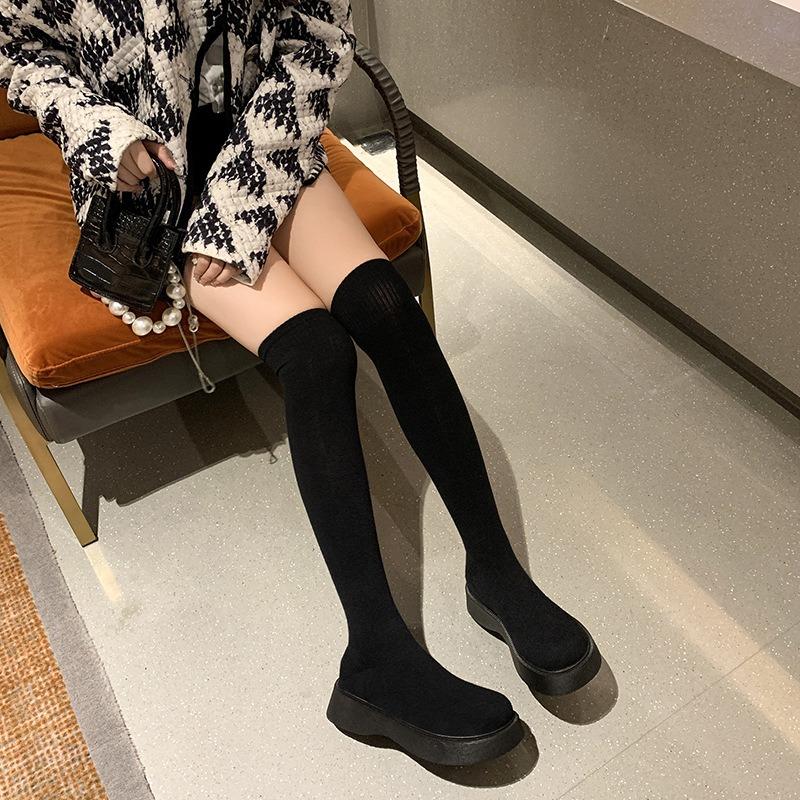 Vintage Knitted Over Knee Elastic Boots Women's Autumn Socks Boots Women's Martin Boots