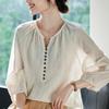 Summer New Style Korean Version of the Wild Loose V-neck Five-point Sleeve Shirt, Elegant Temperament Ladies Shirt Top