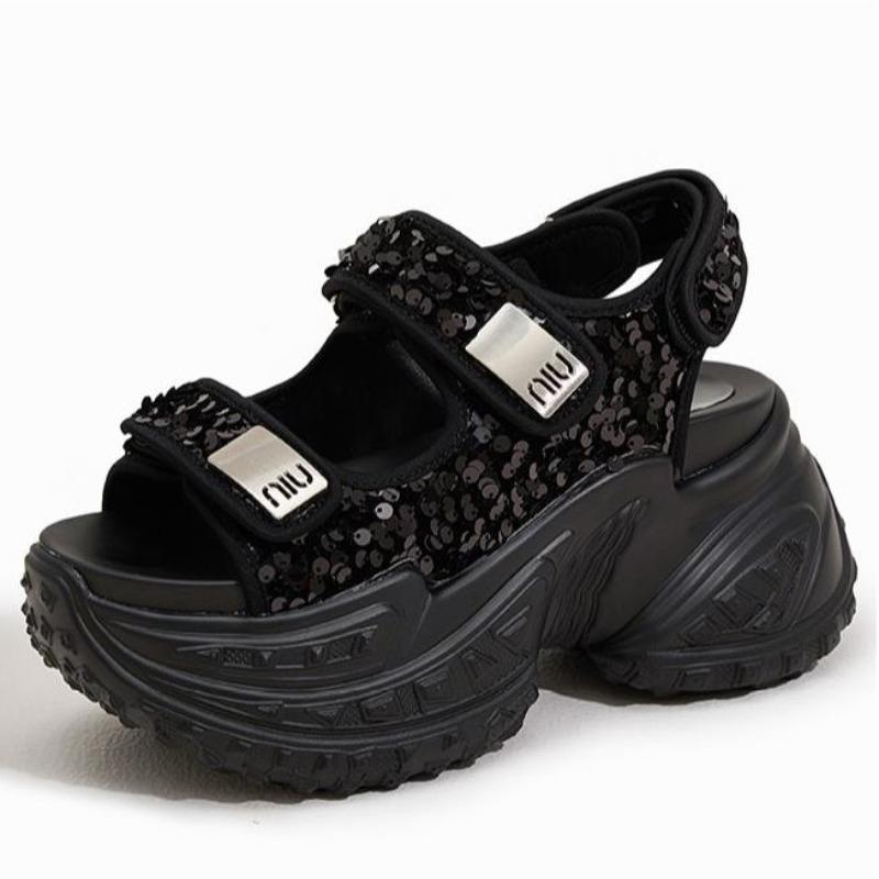 High Quality 8cm Air Mesh Synthetic Genuine Leather Bling Chunky Sneakers 2025 Summer Women Vulcanize Platform Wedge Comfy Shoes